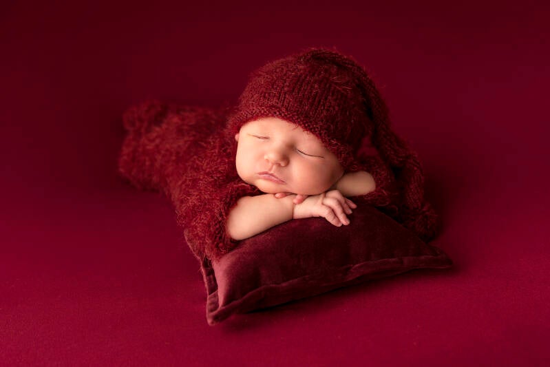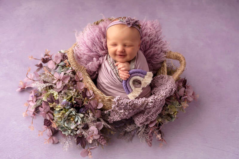 Het volgende is focus. Ik moet in staat zijn om beelden te produceren die duidelijk in focus zijn. Het cameramodel dat ik gebruik, kan deze taak iets gemakkelijker maken, maar als ik met kleine pasgeborenen werk, kunnen een paar millimeter het verschil maken tussen een scherp gezicht of niet! Dit is iets wat je misschien niet zo opmerkt op het kleine scherm van een telefooncamera, maar zodra ik een groot stuk muurkunst voor je wil maken, moet de focus haarscherp zijn! Ik moet ook het onscherpe gebied onder controle houden. Dit wordt de scherptediepte genoemd. Het is een complexere versie van de 'portret'-modus op je telefooncamera.