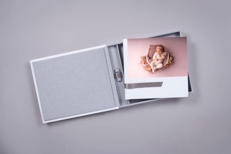 Een fotoalbum of fotoboek is een klassieke manier om je newbornfoto's te bewaren en te laten zien. U kunt kiezen uit verschillende formaten, stijlen en ontwerpen om een persoonlijk aandenken te creëren dat u en uw gezin jarenlang kunnen koesteren. Fotoalbums zijn geweldig om je foto's op een salontafel of boekenplank weer te geven, terwijl fotoboeken perfect zijn om cadeau te geven of om op een plank of mantel neer te zetten.